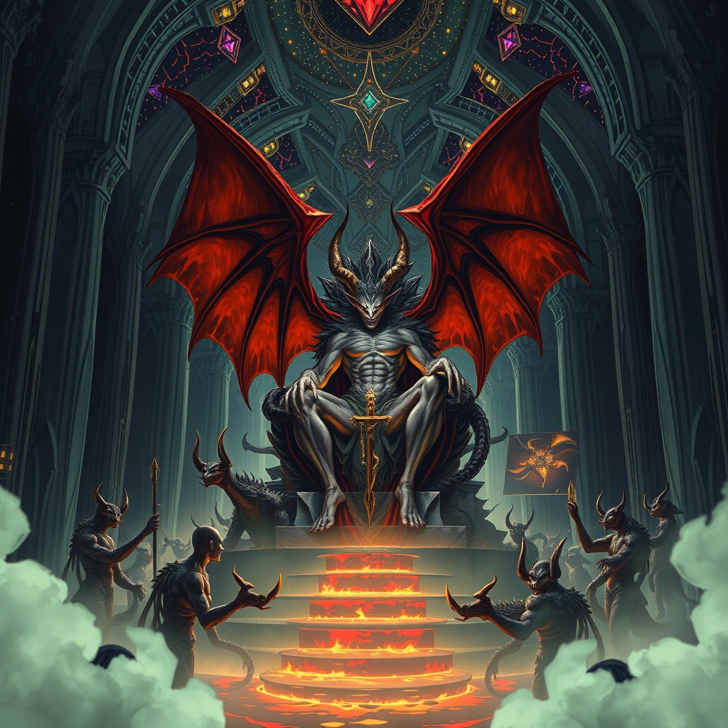Inside, the halls of Lucifer’s Palace unfolded in a labyrinthine maze of opulent chambers and dimly lit corridors. Shadowy tapestries depicting scenes of cosmic warfare draped the walls, their threads woven from strands of starlight and the whispers of the vanquished lumearcs that died in The Time Before. The air was thick with the scent of incense and brimstone, mingling with the distant echoes of unearthly melodies that emanated from hidden chambers where lumenarcs and demons alike conspired – for every corner of the palace whispered of secrets and schemes, of alliances forged and betrayals plotted, all in service to the insatiable hunger for dominion that drove the fallen prince of light.