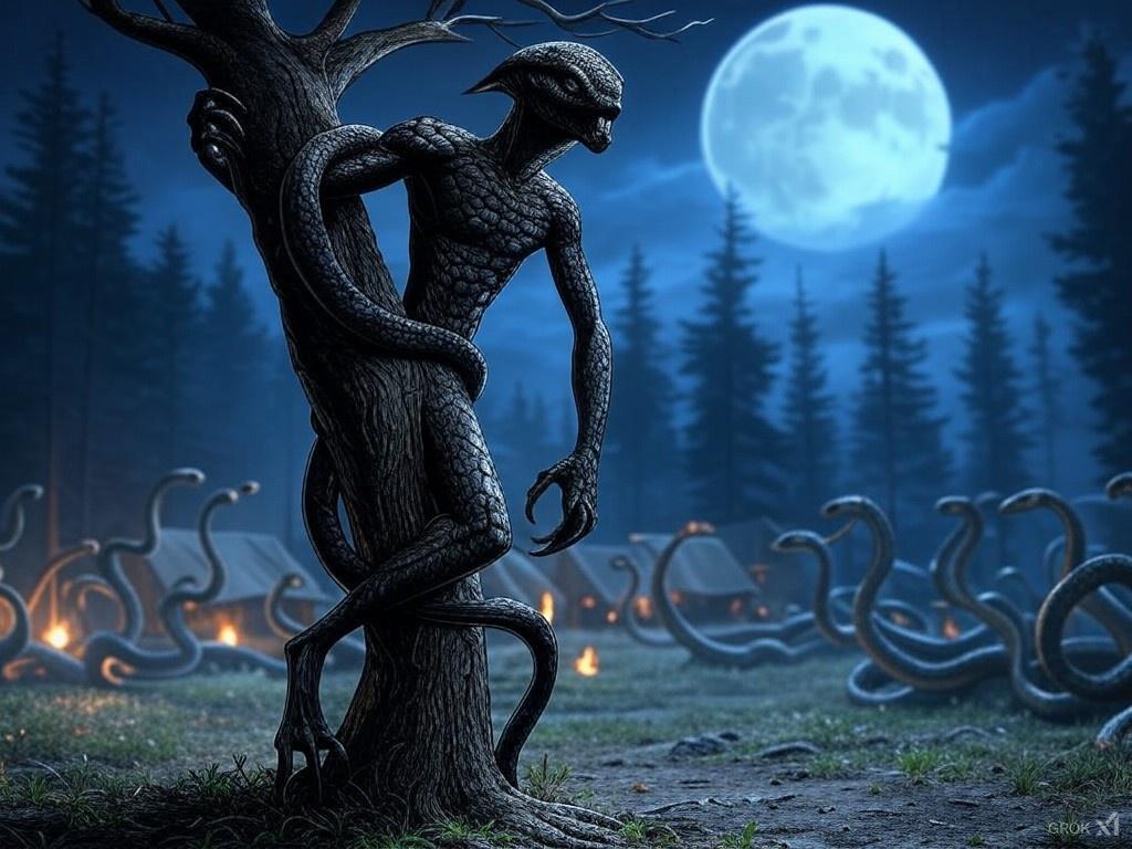 One night, after Kane and his people had made camp in the forest, during the second watch of the night, when most of the clan was asleep, an eerie silence was broken only by the whispers of the grass moving. For although the people didn’t know it, the ground began to writhe with a sinister movement and from the shadows emerged countless asps, their venomous fangs glistening in the moonlight. And Asmodeus, hidden within the darkness, directed his serpentine minions with a malevolent grin.
