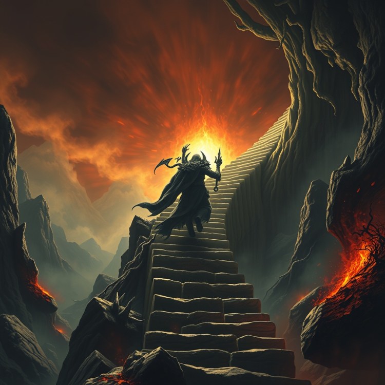 And with that, my lord and his queen expelled me from their presence and forced the baals to drive me pell-mell to The Stairway of Infinity – casting me out of Illusia once again.