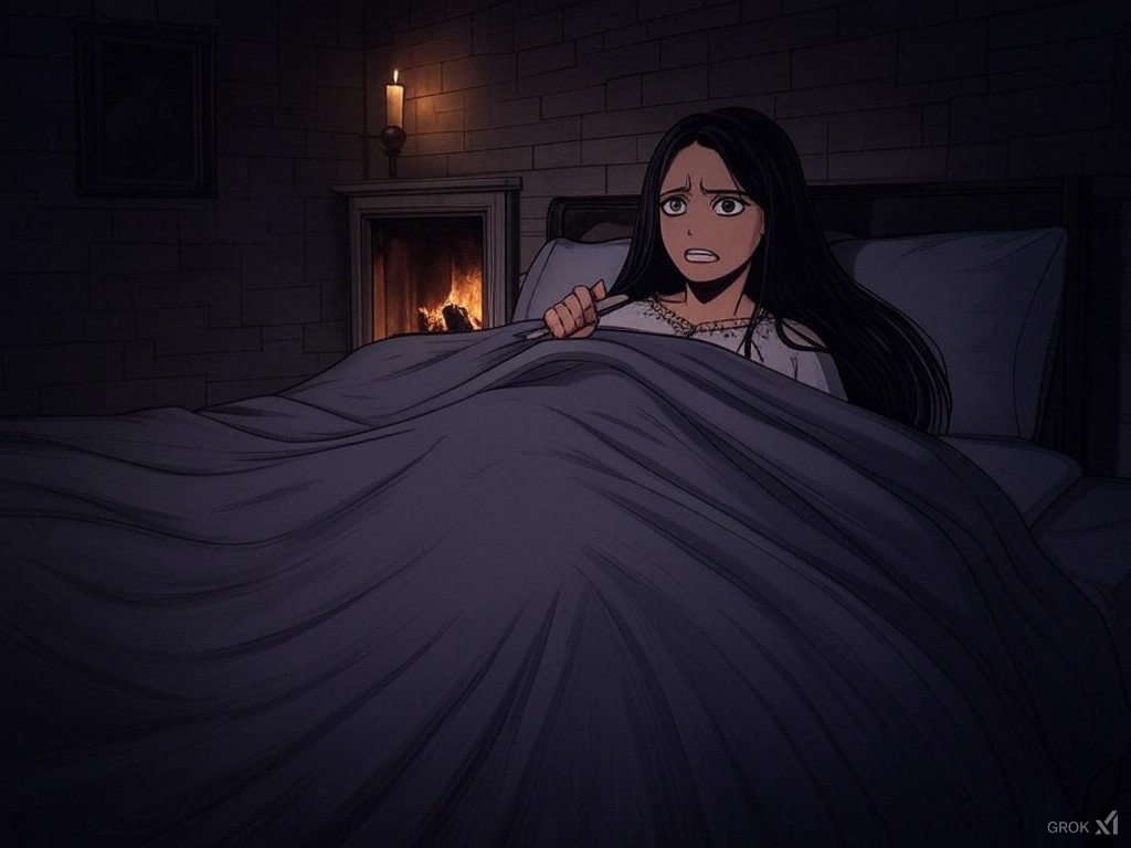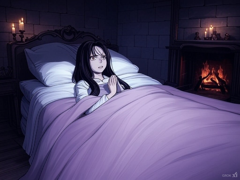 The thought made Hecla afraid. The room seemed to breathe with her anxiety. Each creak of the wooden floorboards, every groan of the castle walls, resonated in Hecla’s ears like a sinister whisper. The ancient stones of the castle, steeped in history and cold secrets, seemed to amplify her fear, making her feel as if the very walls were closing in on her. Her heart pounded in her chest, a relentless drumbeat that echoed the dread swelling within her. Each heartbeat was a stark reminder of her vulnerability, the fragility of her safety. She lay rigid in her bed, muscles tensed, listening intently for the faintest sound of footsteps approaching her door. The anticipation of his arrival was a torment in itself, every minute stretched into an eternity of terror.