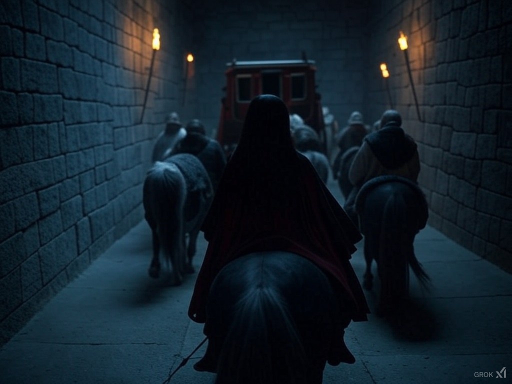 The pursuit through The Byways was fraught with tension. Every bump and jolt of the rough road was a reminder of the urgency of their mission. Hecla’s eyes darted to every shadow, yet the oppressive silence of the caverns was broken only by the sound of hooves and the occasional curse from one of her men.