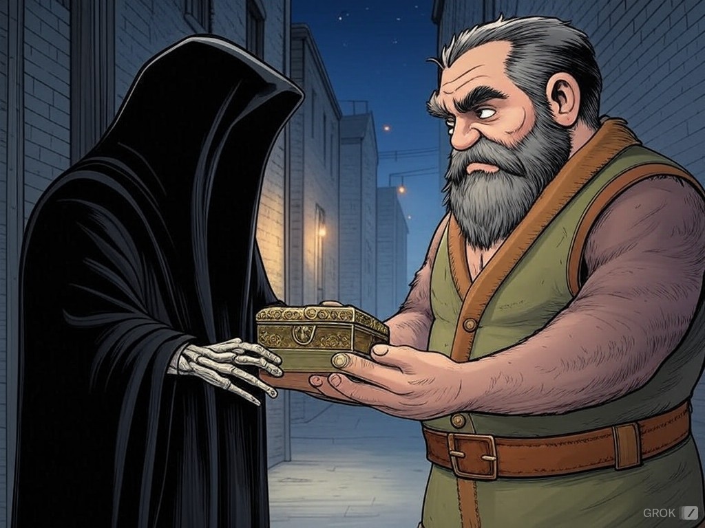 One day, typical of any other, Gromm’s eyes lingered on the richer merchants, their stalls overflowing with wares, their purses fat with coin. He clenched his fists, the calloused skin scraping against roughened palms. He couldn’t understand why fortune favored them and not the honest, hardworking folk like himself.