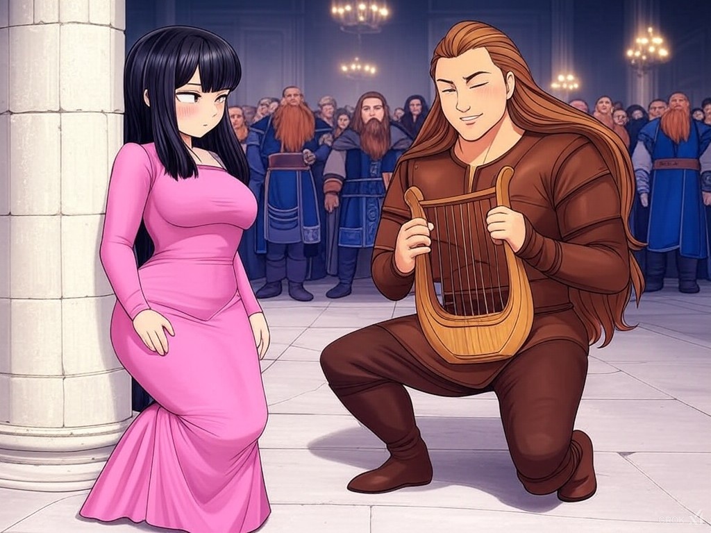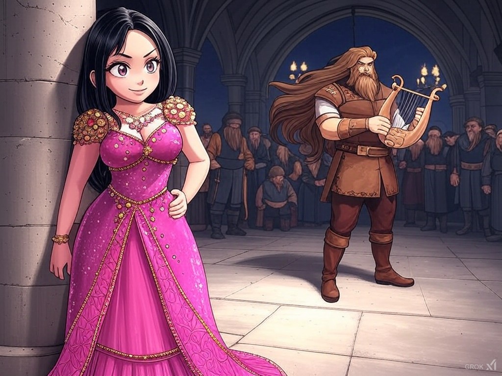 Belgrath took his place in the center of the hall, his lute slung casually over his shoulder. The instrument was as finely crafted as its player, with a body made of dark wood inlaid with silver and strings that shimmered in the light. He met Baldur’s gaze and offered a respectful nod, but there was a glint in his eye that suggested mischief.
