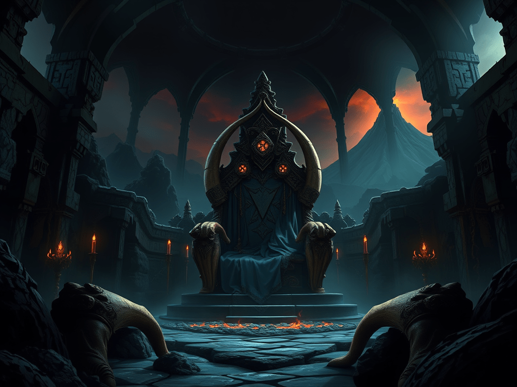 I rose from my sparkling cathedra, standing atop the dais to survey the vast hall. The pit fires flickered dimly—I’d sent my slaves off earlier, craving solitude while they retrieved Pesties from his cell. Now their delay gnawed at me. Storming across The Gallery, my heavy robes whisked the uneven stone, past artifacts I’d no time to admire.
